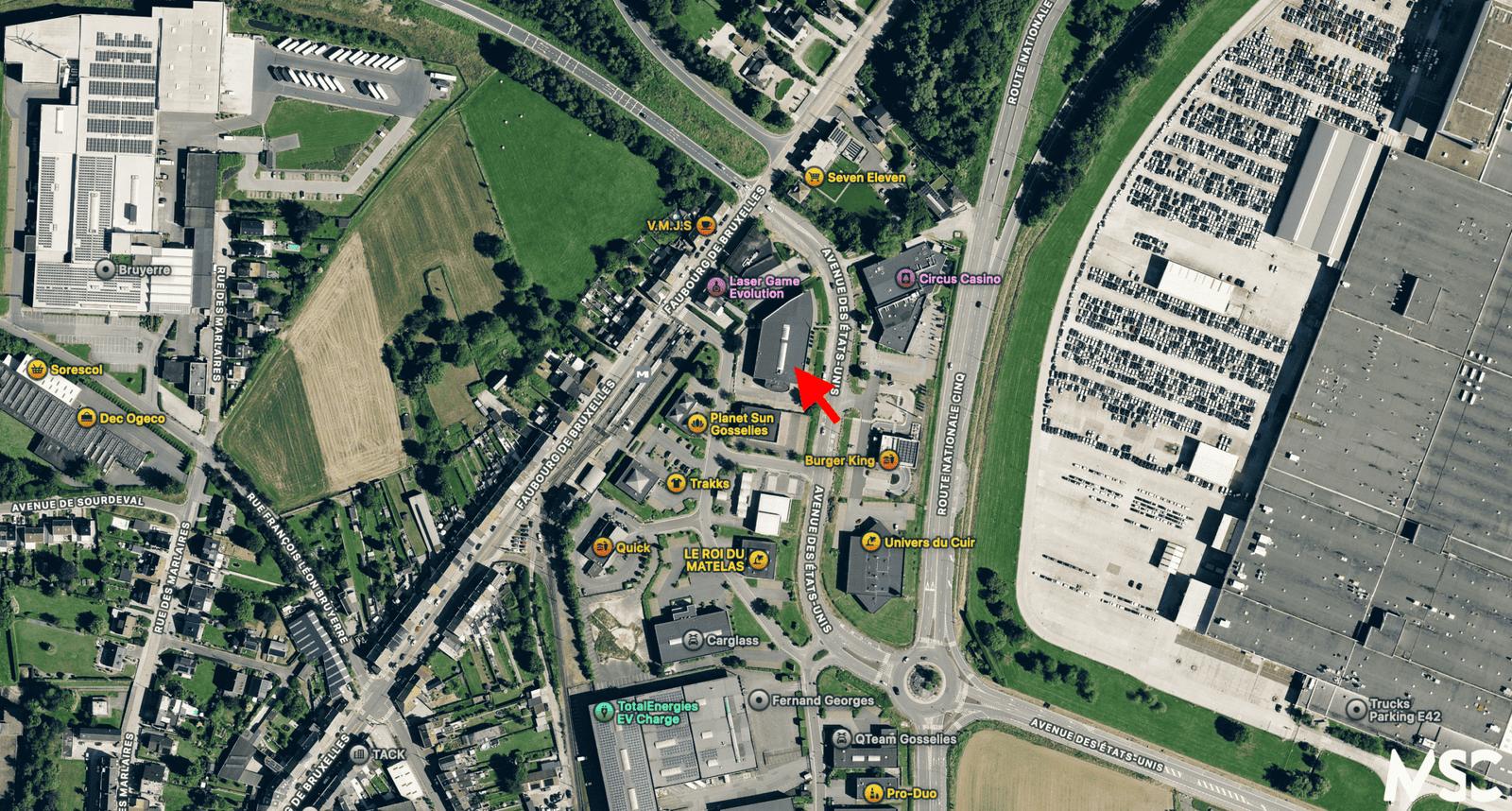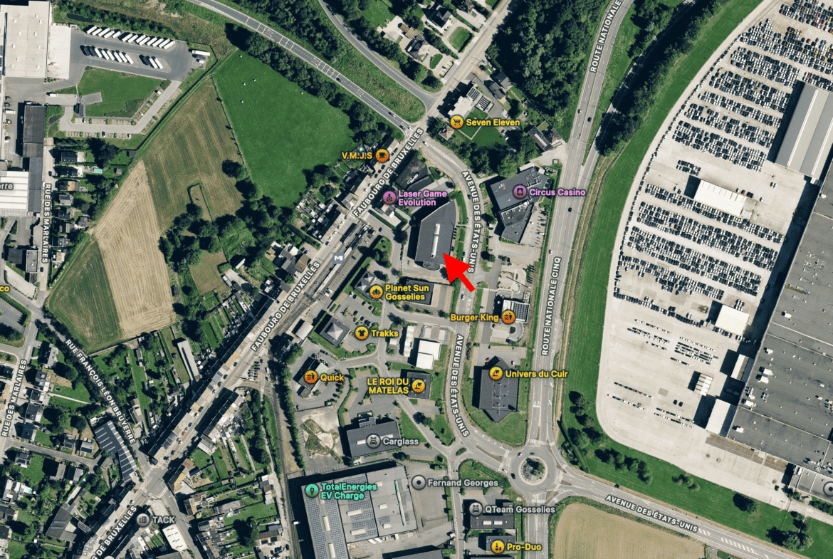 Idéalement situé le long d’un axe routier très fréquenté et facile d’accès, ce site bénéficie d’une visibilité commerciale exceptionnelle à Gosselies. Implanté à proximité immédiate des pôles commerciaux CITY NORD et ESPACE NORD, il profite d’un environnement dynamique, fréquenté en continu et parfaitement connecté aux grands axes.